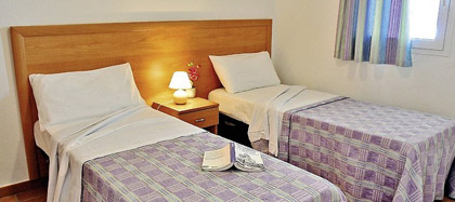 Wohn-/Schlafraum mit Bettcouch und Ausziehbett, Schlafzimmer mit franz. Bett, 2-Bett-Zimmer oder Schlafzimmer mit franz. Bett, Gartenblick oder seitlicher Meerblick.